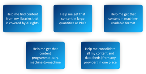 “How do I get large quantities of rights-cleared content for machines to consume, in support of AI-driven use cases, and ideally do so in a way that is efficient and sustainable?”